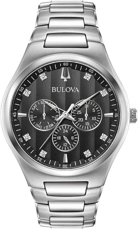 Bulova Classic Stainless Steel Multi-Function Diamond Accent Mens Watch 96D143