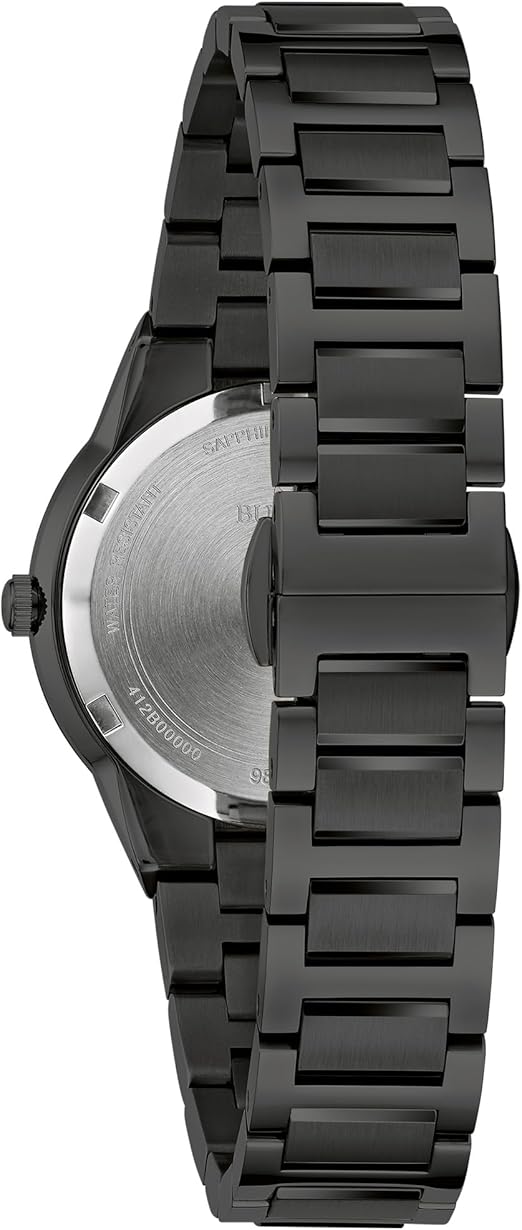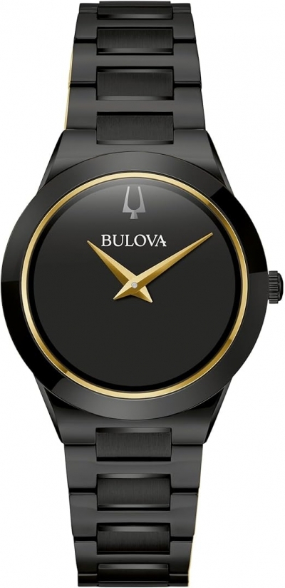 - Part of the Bulova womens Modern collection this sophisticated 32 mm black ion-plated stainless steel timepiece features an ultra-slim 7.2 mm thickness and a masterclass in contemporary design.
