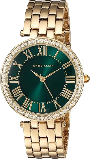 Anne Klein Gold-Tone Crystal Bezel Green Sunray Dial Ladies Watch AK/2230GNGB