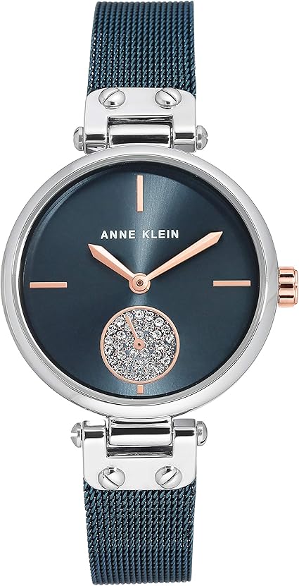 Anne Klein Blue-Tone Sunray Dial Mesh Bracelet Crystal Sub-Dial Ladies Watch AK/3001BLRT
