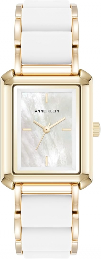Anne Klein Gold-Tone Rectangular White Mother-of-Pearl Silicone Ladies Watch AK/5278GPWT