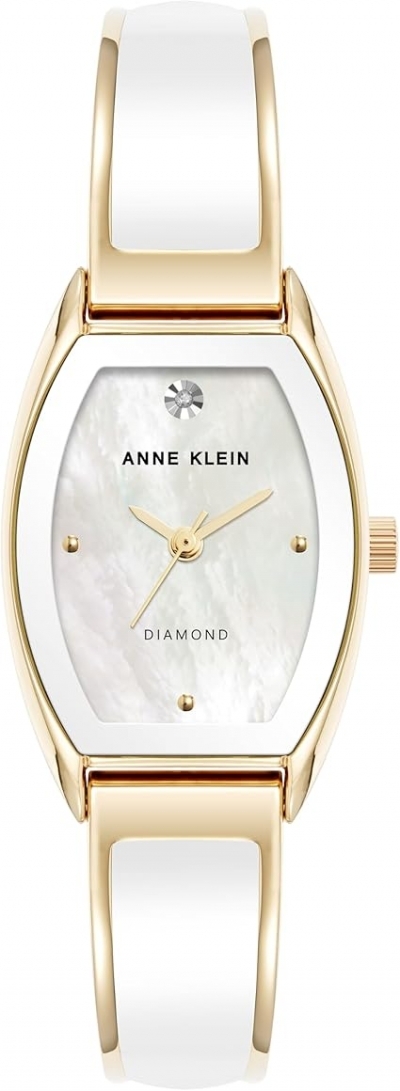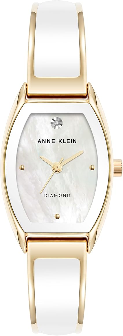 Anne Klein Gold-Tone Mother-of-Pearl Enamel Bangle Diamond Ladies Watch AK/5238WTGB