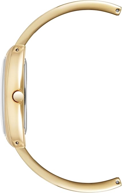 - Driven by a precise Japanese quartz movement the timepiece is integrated into a 10.5 mm wide gold tone and white enamel bangle that includes adjustable end links and a jewelry clasp with an extender for a seamless fit.