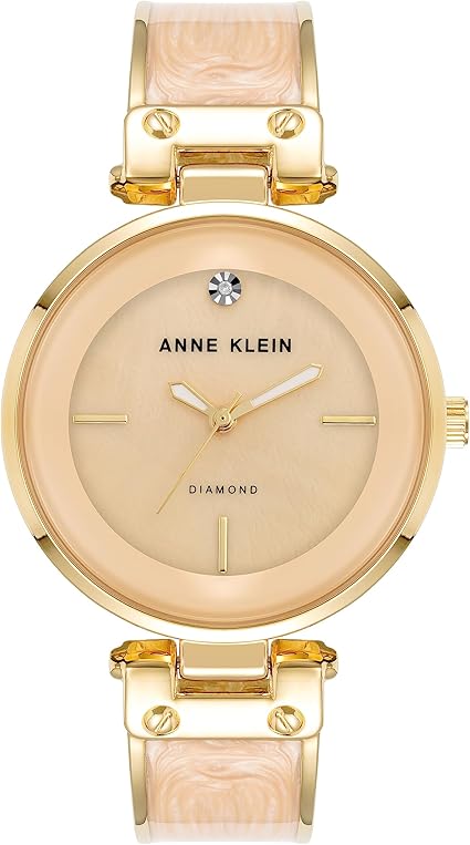 Anne Klein Gold-Tone Cream Marbleized Bangle Diamond Accent Ladies Watch AK/2512CRGB