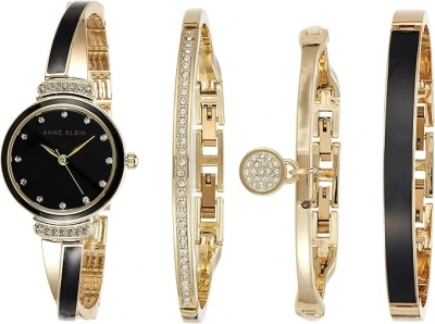 Anne Klein Gold-Tone Black Dial X-Shaped Bangle Set Ladies Watch AK/2716BKST