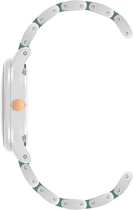 - Driven by a precise Japanese quartz movement the watch is paired with a 14 mm wide silver tone adjustable link bracelet featuring green ceramic center links and a jewelry clasp with an extender.