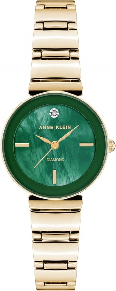 Anne Klein Gold-Tone Emerald Green Mother-of-Pearl Diamond Accent Ladies Watch AK/2434EMGB