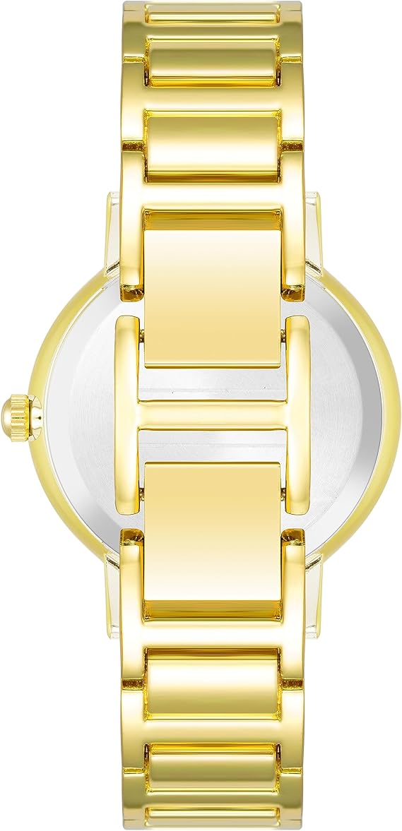 - While the watch is secured by a 14 mm gold-tone adjustable link bracelet with a jewelry clasp and extender it is important to note that this model is not water resistant and should be kept away from moisture.