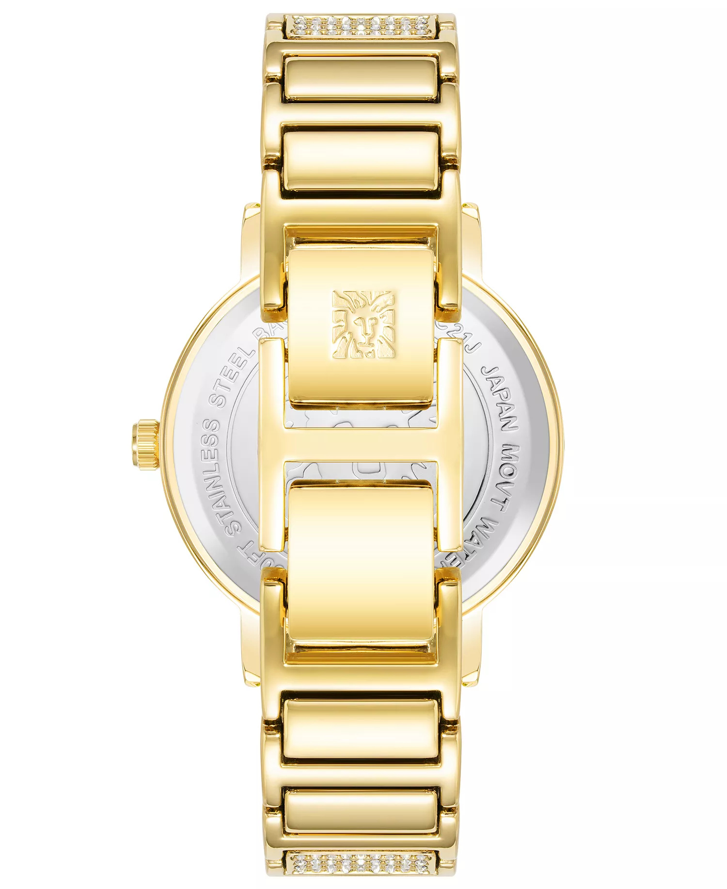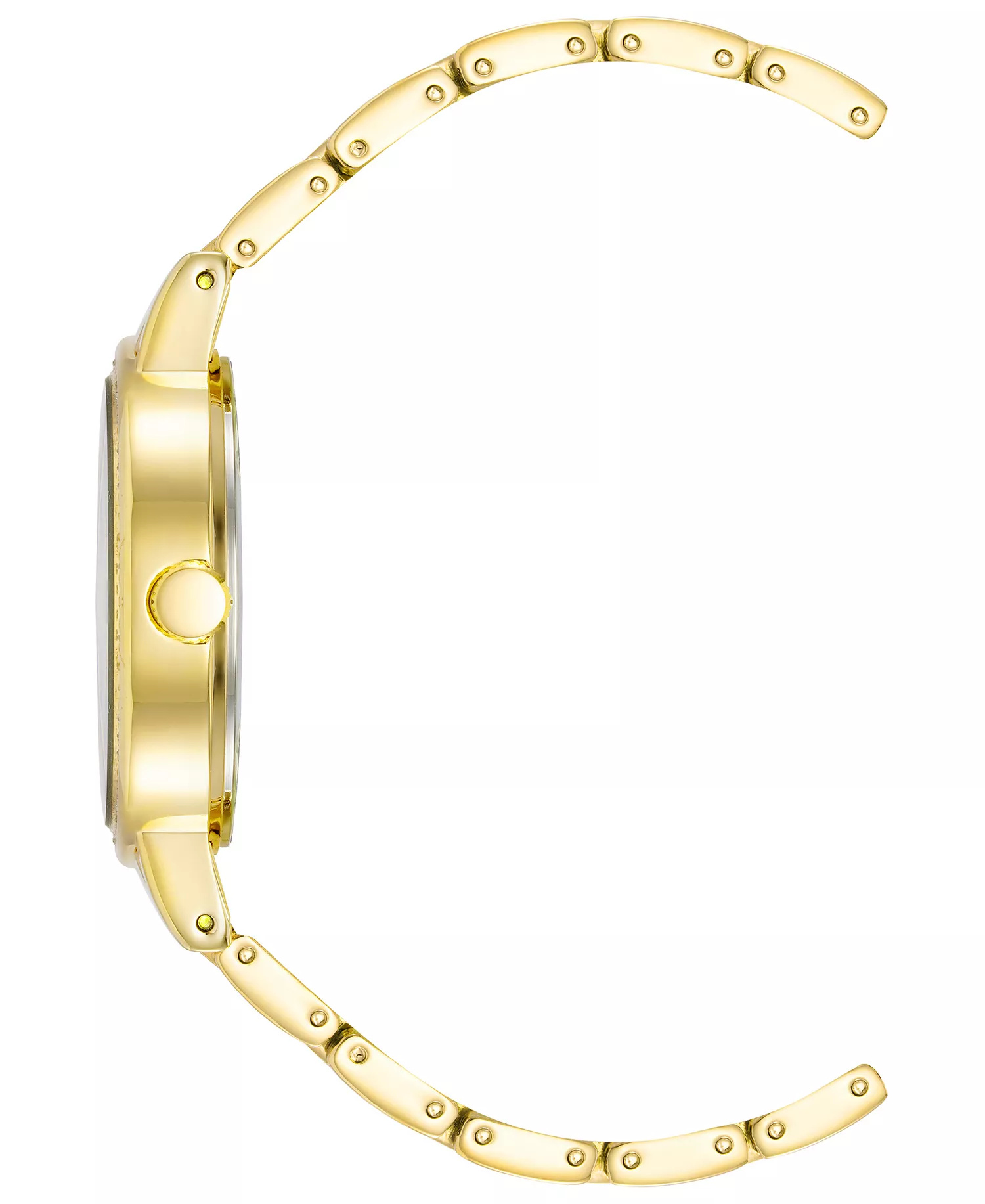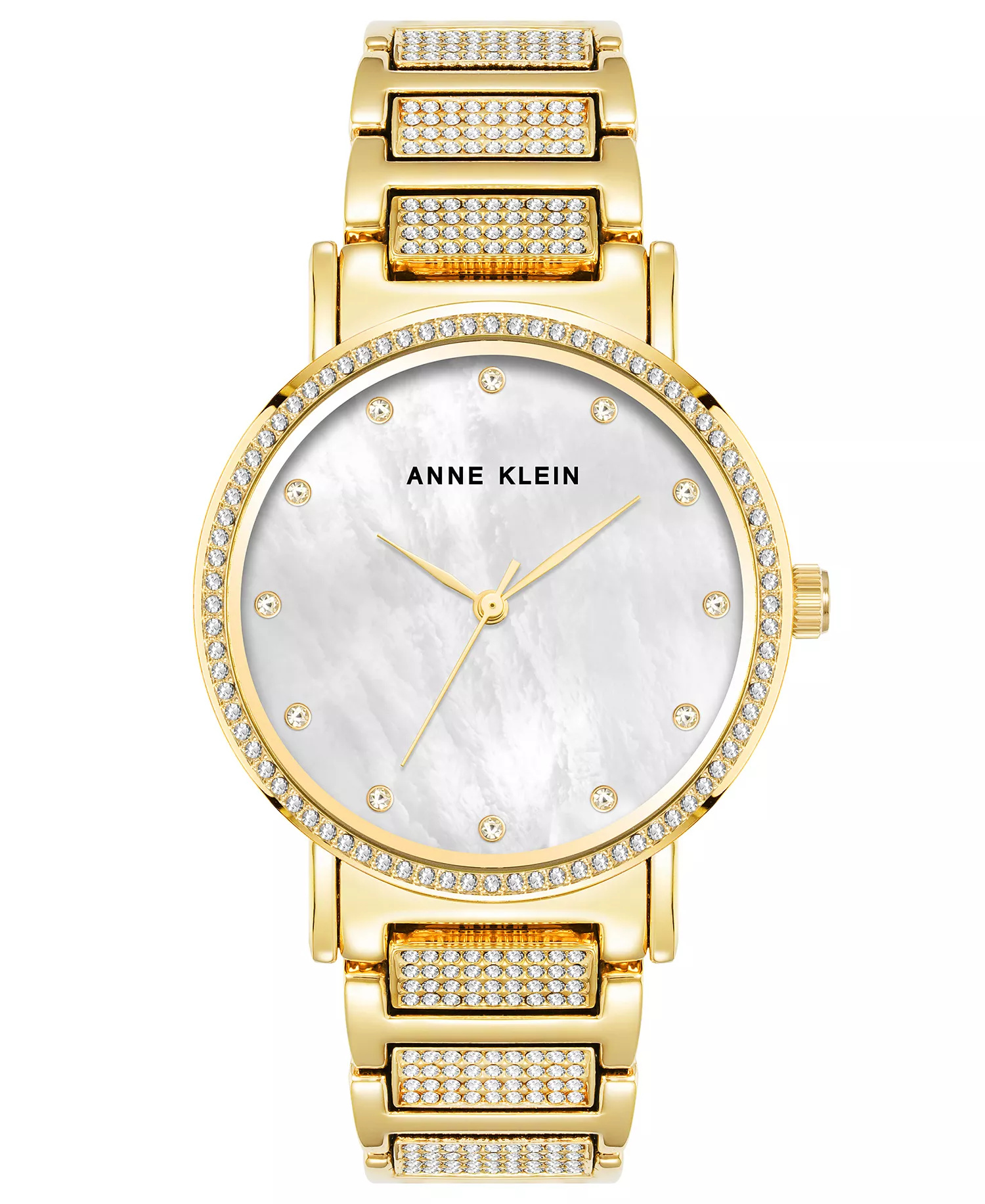 - This glamorous 36 mm gold-tone alloy timepiece features a slim 7.6 mm profile and a classic round case distinguished by shimmering crystals set into both the bezel and the bracelet.