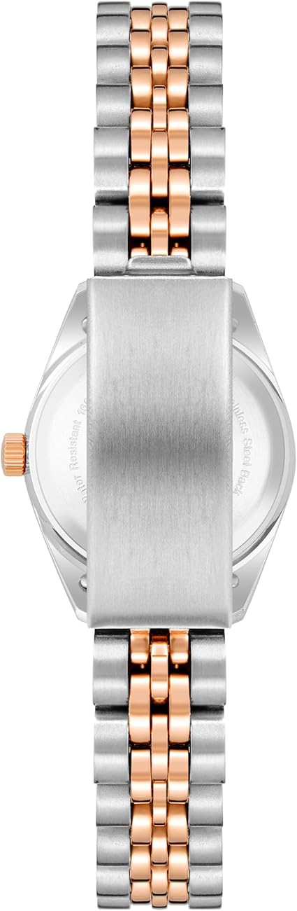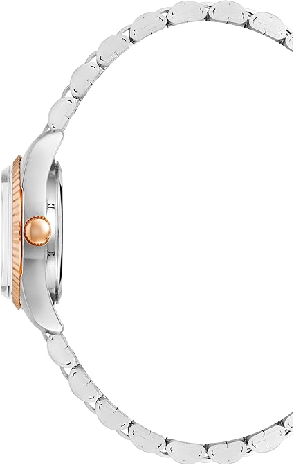 - The silver and rose gold-tone adjustable bracelet secures with a double push-button safety clasp and the piece is water-resistant to 165 feet (50M).
