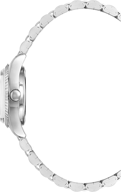 - It includes a silver-tone adjustable link bracelet coin edge bezel and a mineral crystal lens with water resistance up to 165 feet (50M).