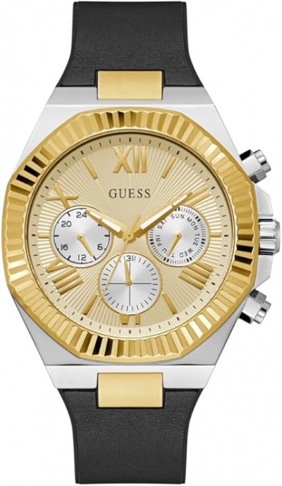 Guess Multi-function Black Leather Two-Tone Mens Watch GW0791G1
