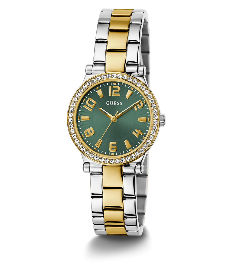 Guess Crystal Bezel Green Dial Two-Tone Ladies Watch GW0686L2